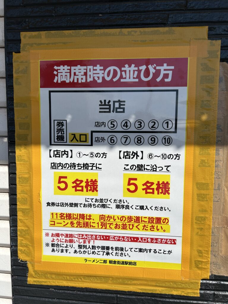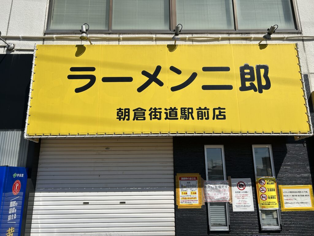 ついに福岡にも『ラーメン二郎』がやってきました。近年、インスパイア系のお店は福岡でも増えつつありますが、正式にラーメン二郎と名乗る店舗はこの朝倉街道駅前店が福岡では初です。私は東京で何店舗かラーメン二郎を食べた経験がありますので、どんな感じか気になり、並ぶでしょうから朝のオープン前から気合を入れて並ぶ事にしました。